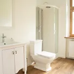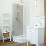 Den Gästen stehen eine getrennte Toilette und eine Dusche sowie Badelaken zur Verfügung.